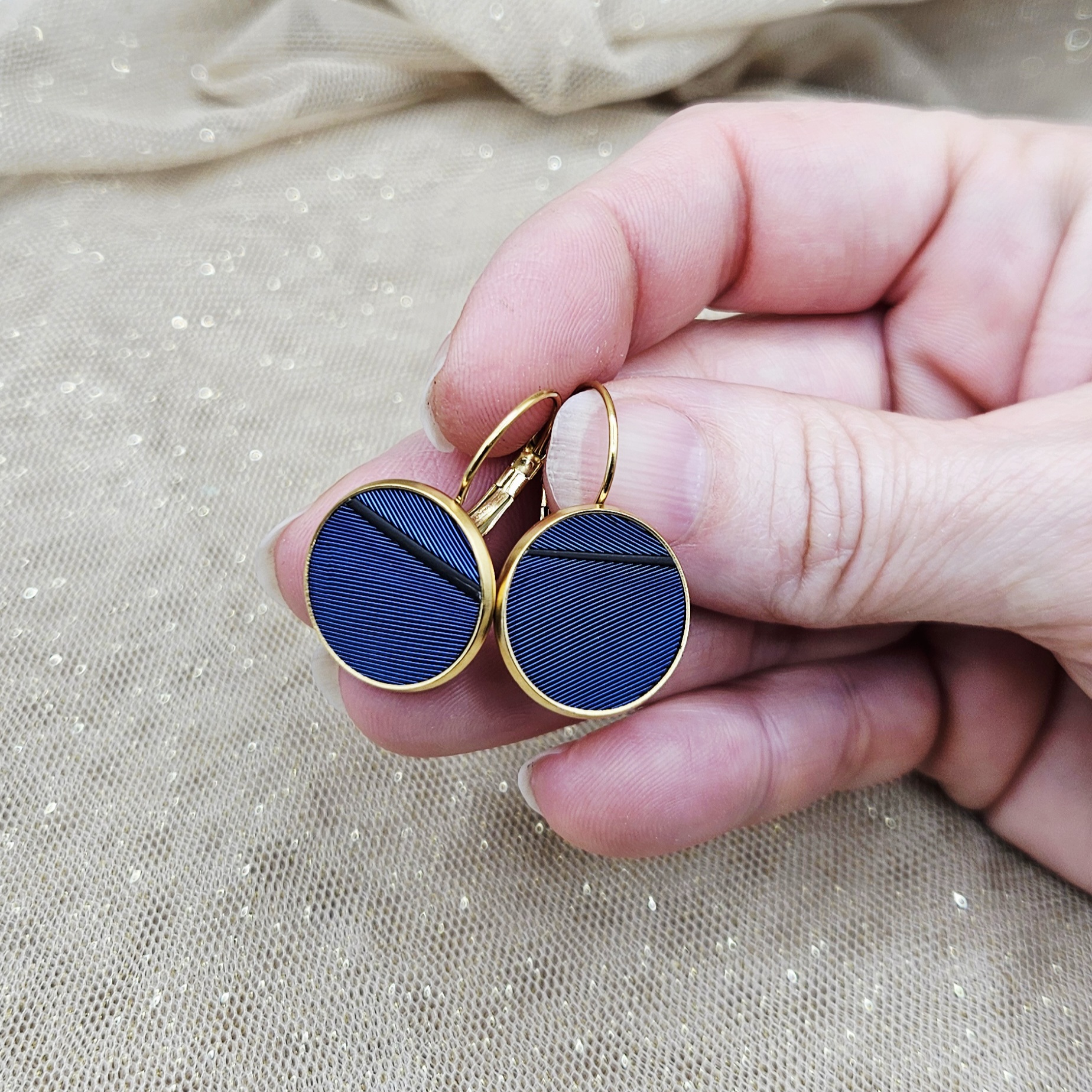 Boucles d’oreilles Dormeuses MARQUETERIE bleues