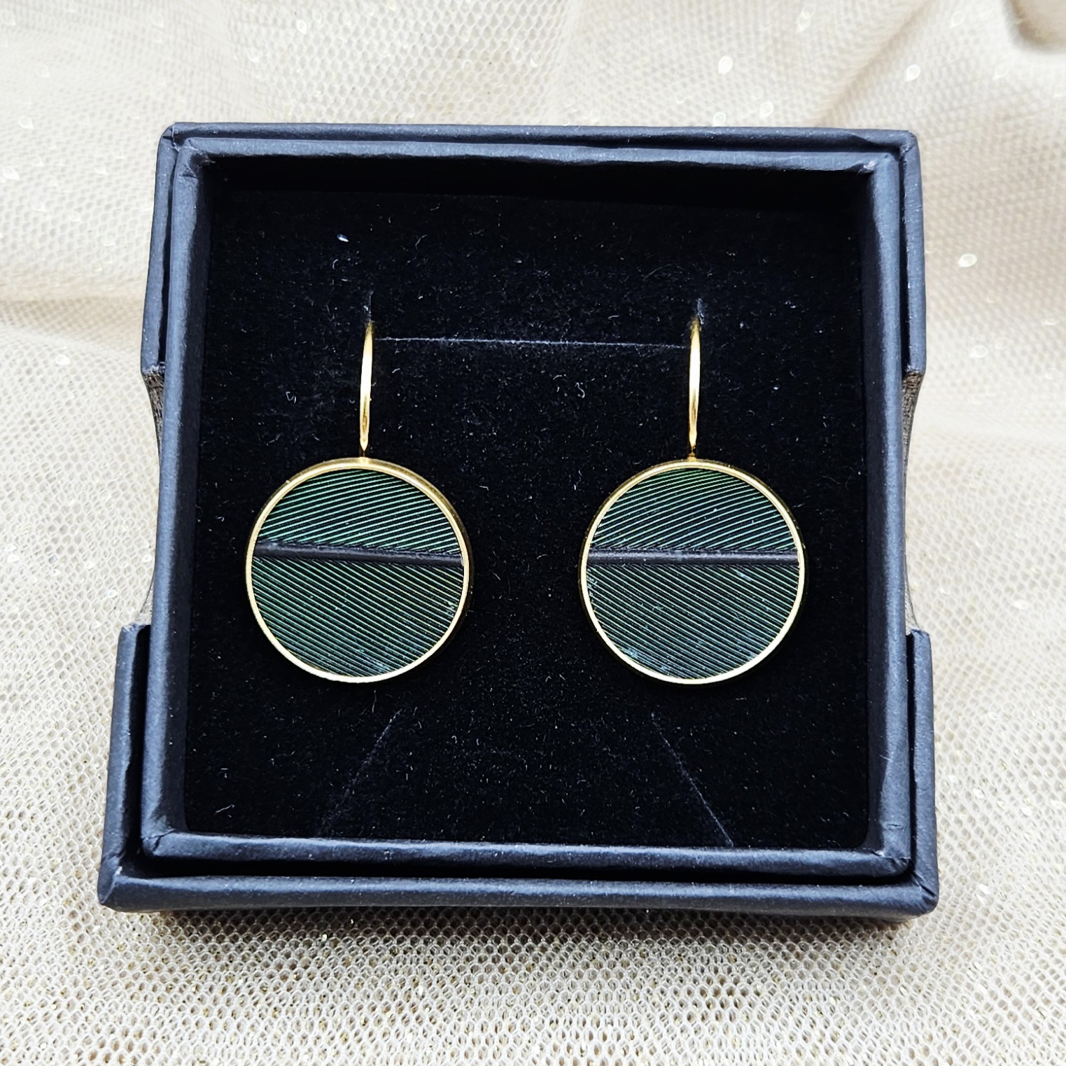 Boucles d’oreilles Dormeuses MARQUETERIE vert sapin