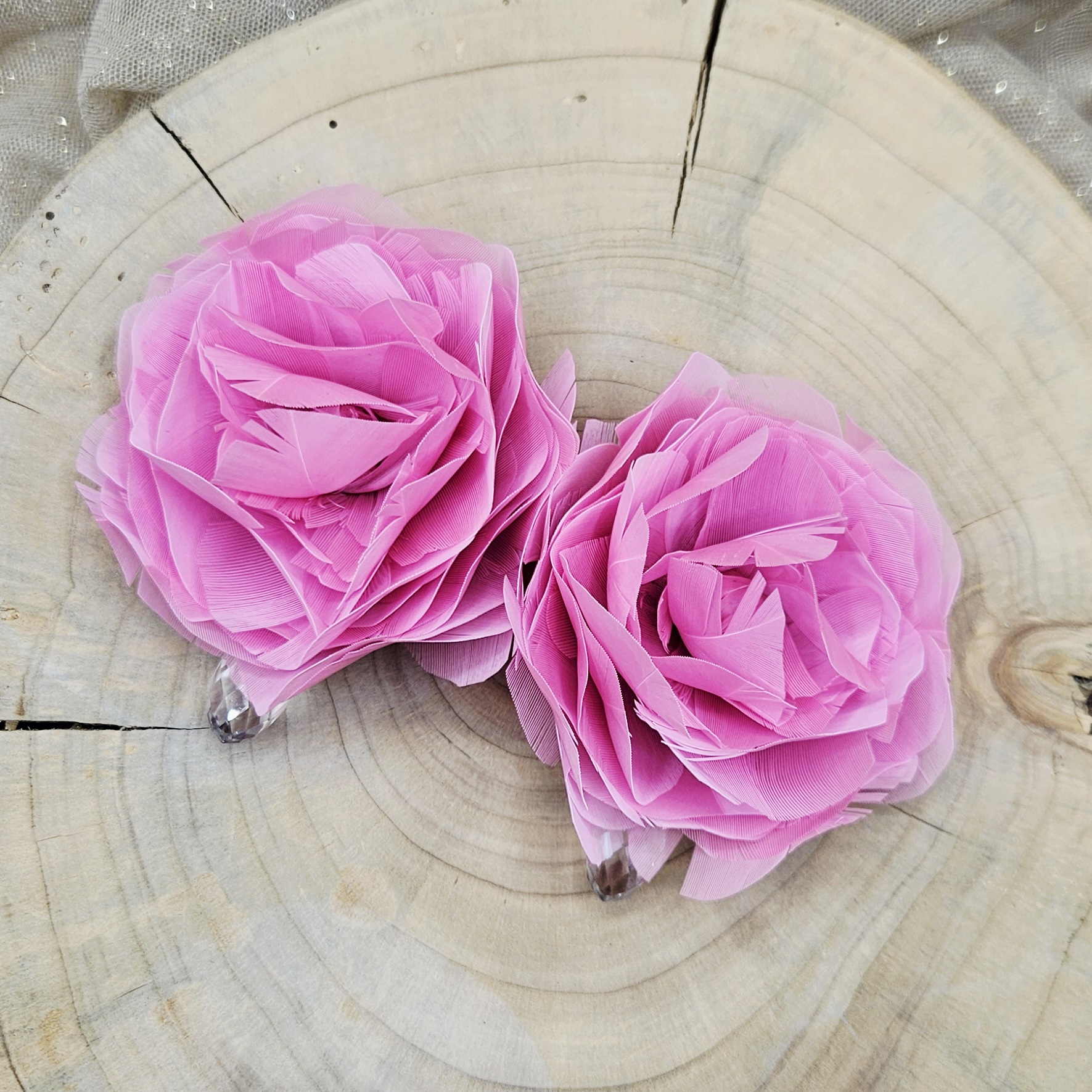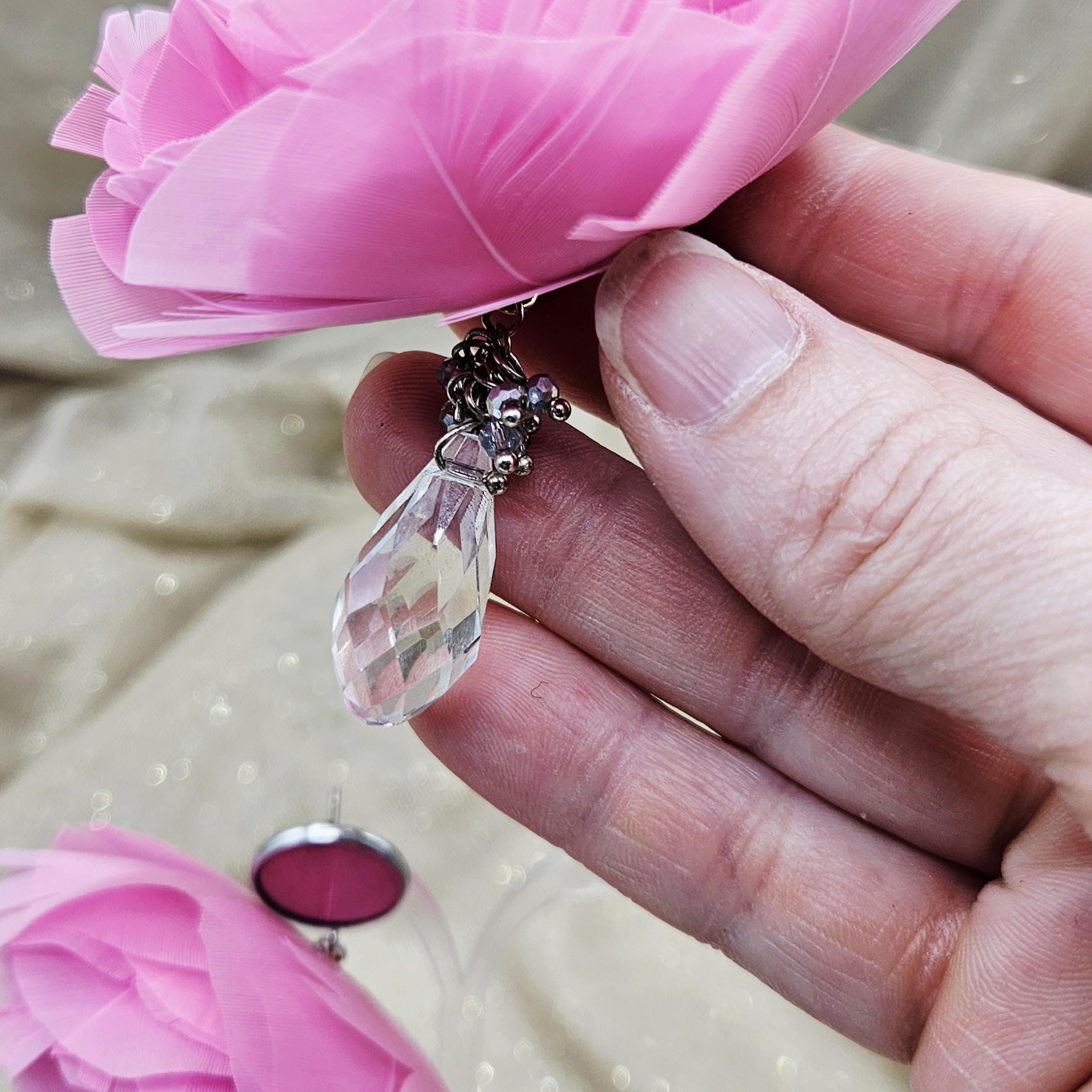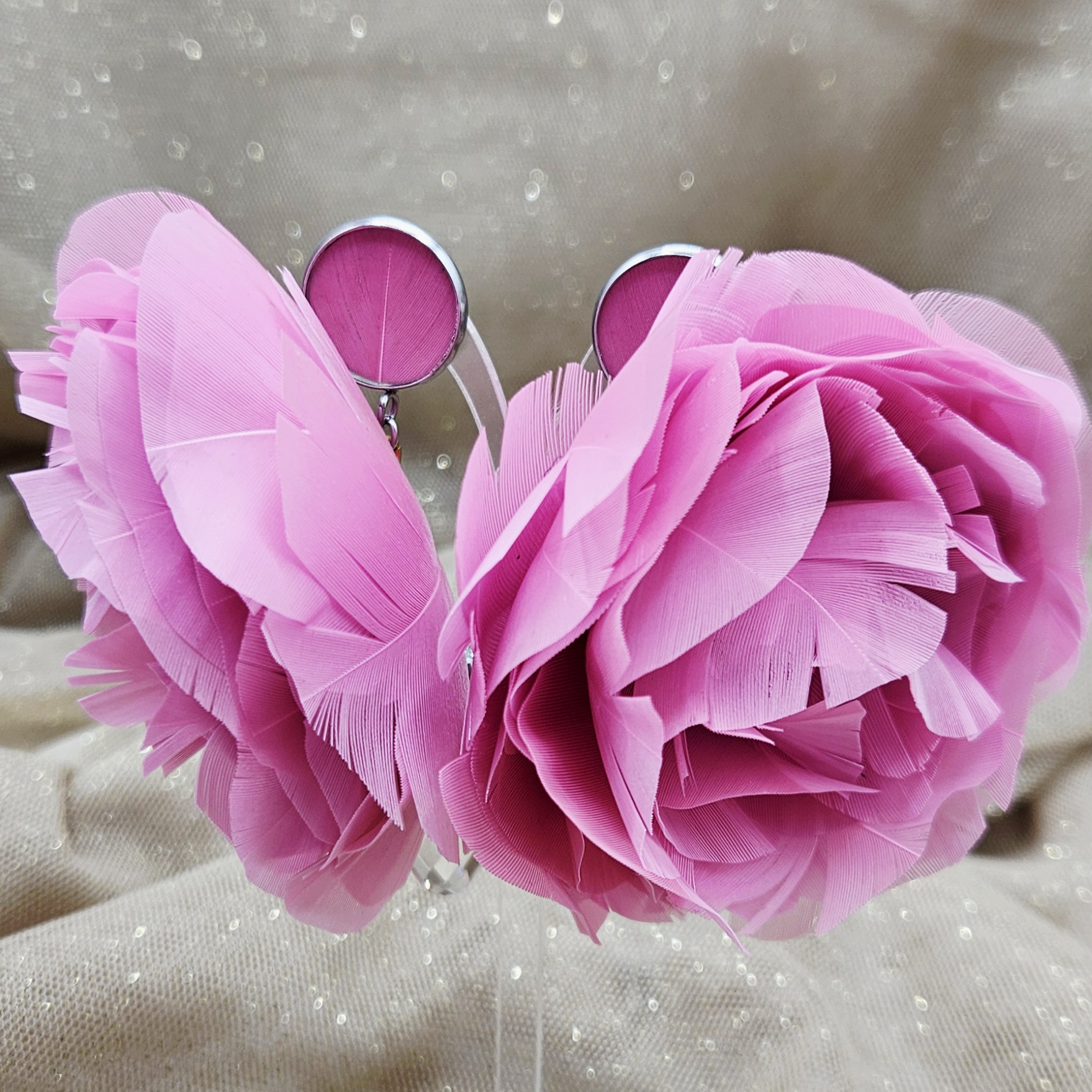 Boucles d’oreilles fleurs en plumes rose – Légères et romantiques